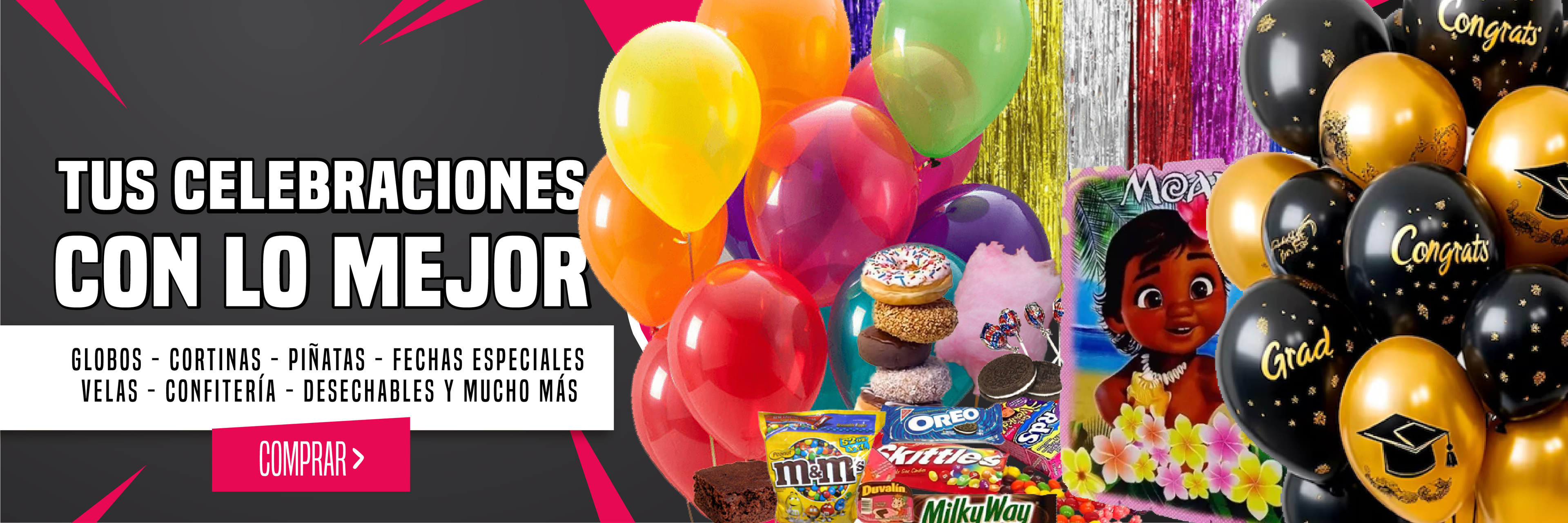 Desde piñatas personalizadas y divertidas, hasta globos, decoración temática y accesorios de fiesta. Cada detalle está pensado para que tus celebraciones sean un éxito total, brindando momentos de alegría y sorpresas para todos.