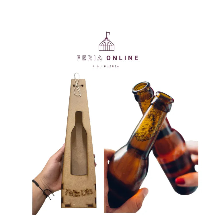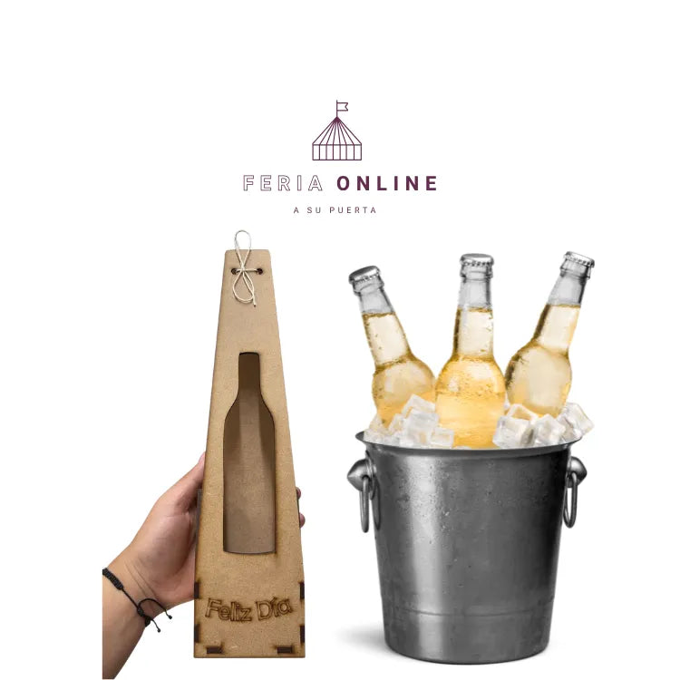 Esta caja de madera con corte en forma de botella transforma lo simple en algo especial. Ideal para sorprender en cumpleaños, celebraciones o eventos especiales.