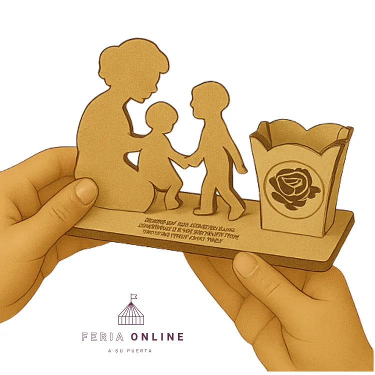 Hecha en madera, es reutilizable y perfecta para decorar después del evento. No es solo un empaque, es un recuerdo tangible que mamá podrá conservar para siempre en su hogar.