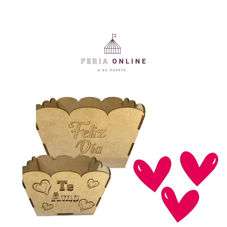 Esta canasta de madera grabada con “Feliz Día” es perfecta para dulces, desayunos o flores.