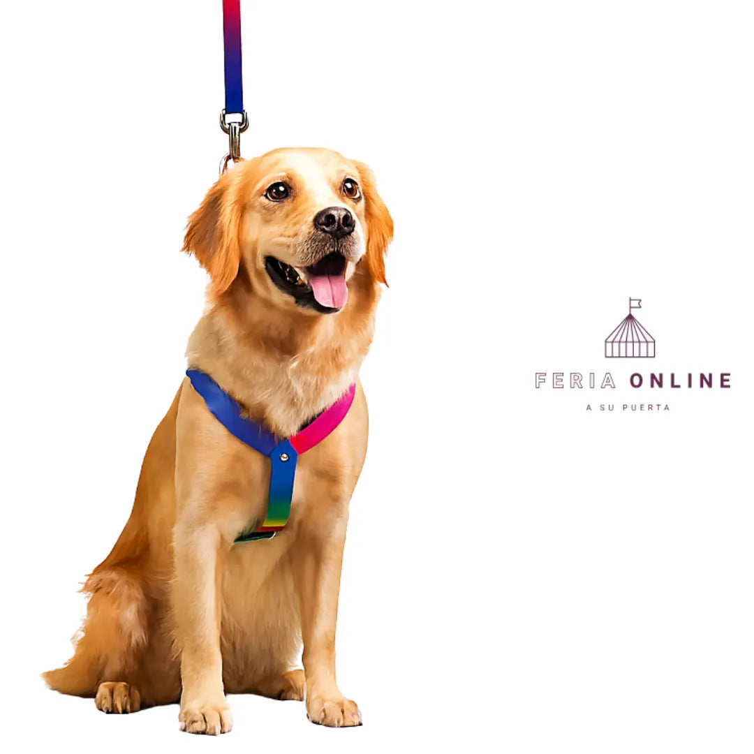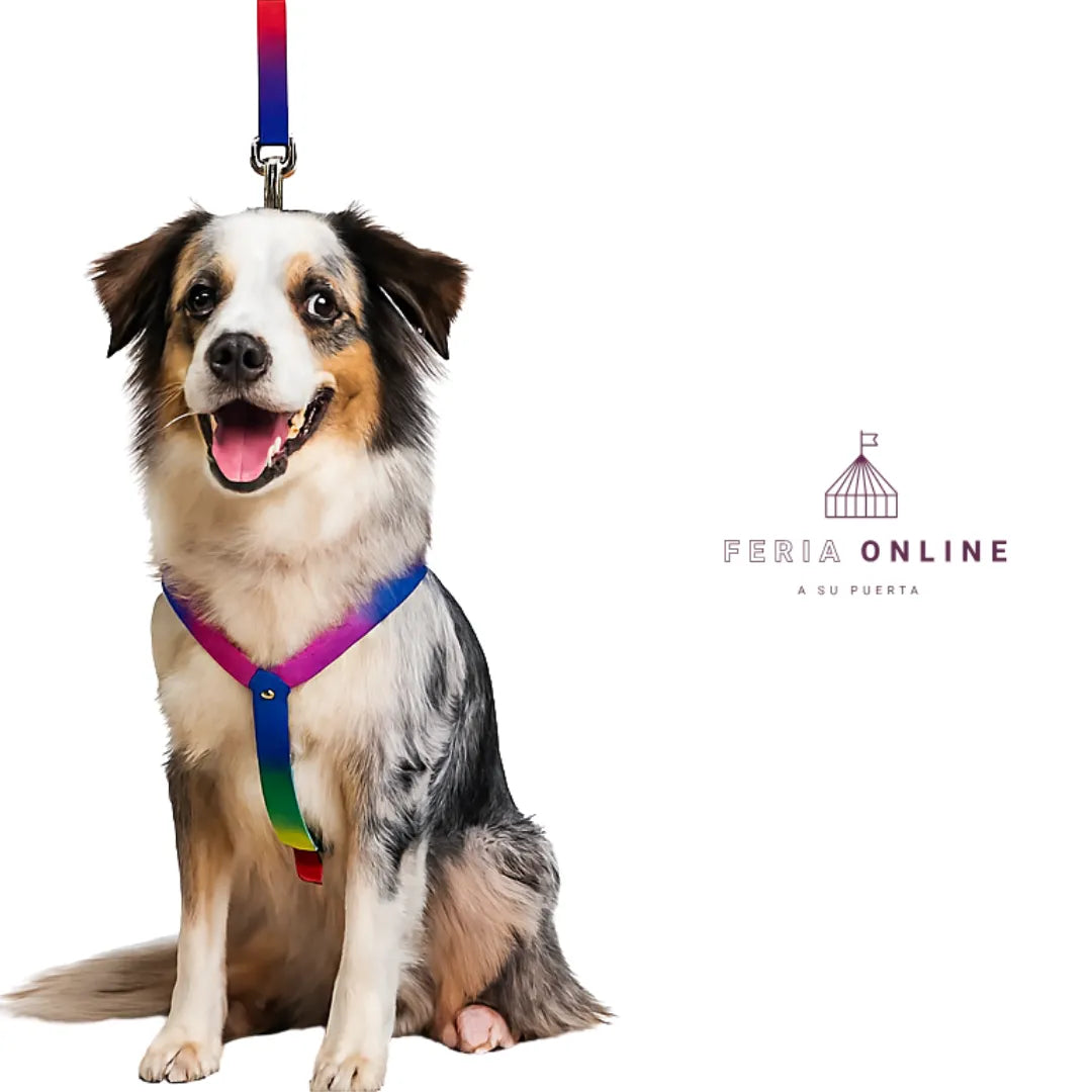 Disponible en varias tallas, este arnés se adapta desde cachorros juguetones hasta perros grandes con energía sin fin. Su sistema de hebillas resistentes garantiza seguridad total, mientras su cinta multicolor lo hace imposible de ignorar.