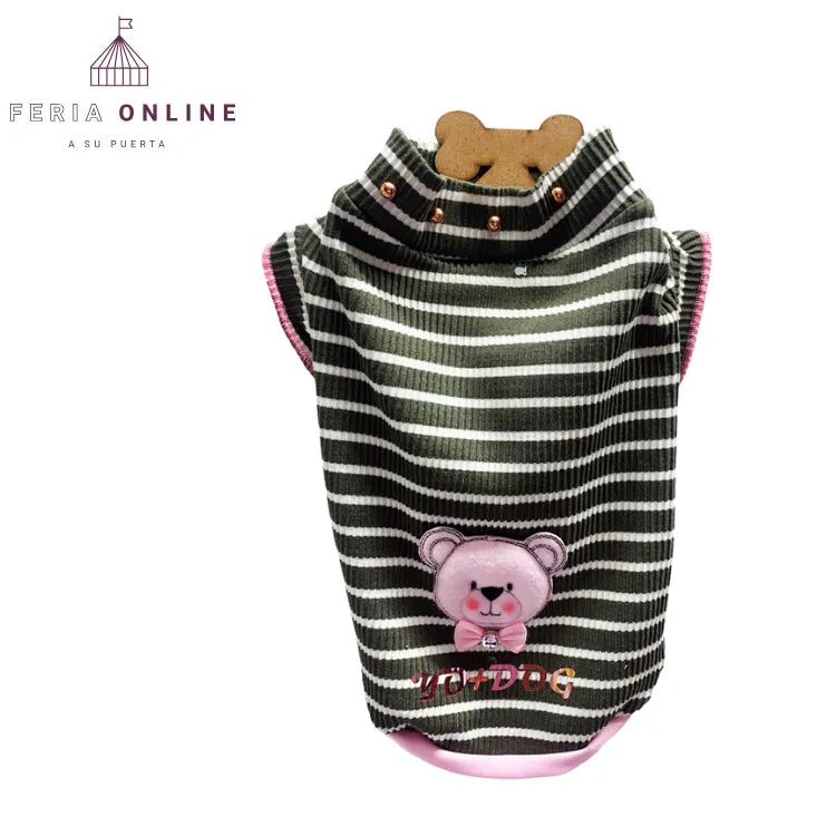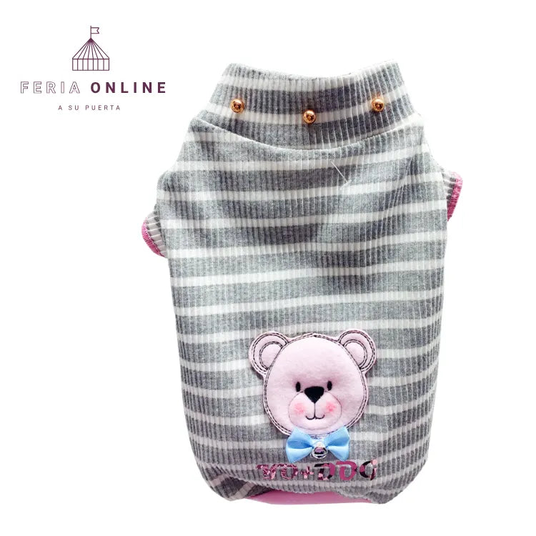 El corbatín y el osito decorativo no son solo detalles, son el alma de esta prenda encantadora. Tu mascota se sentirá mimada y cómoda gracias a la tela acanalada suave y abrigadora, perfecta para los días fríos.