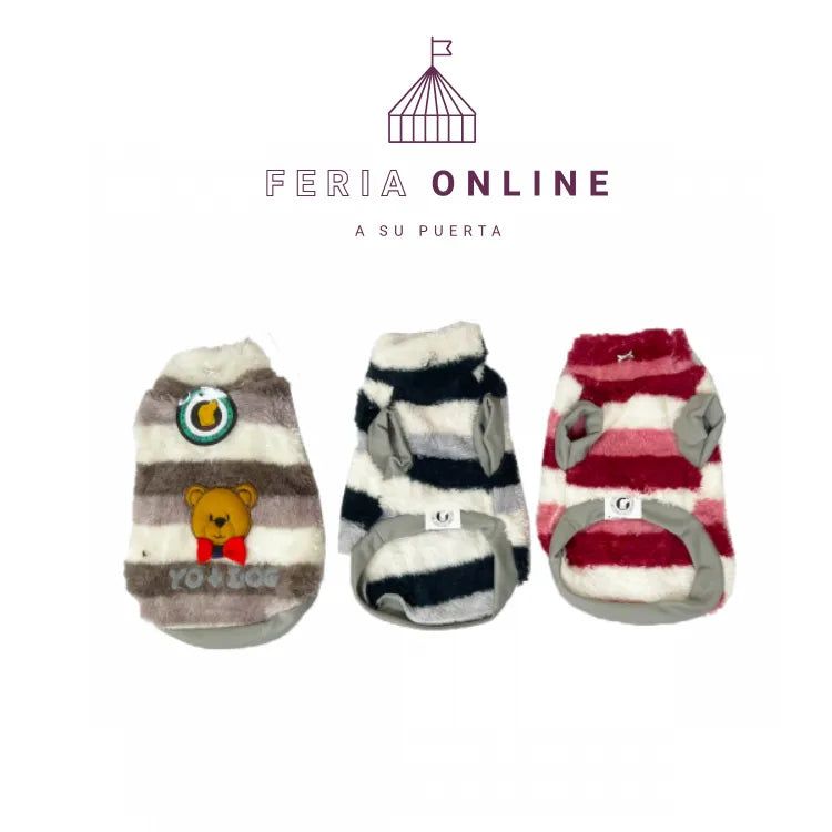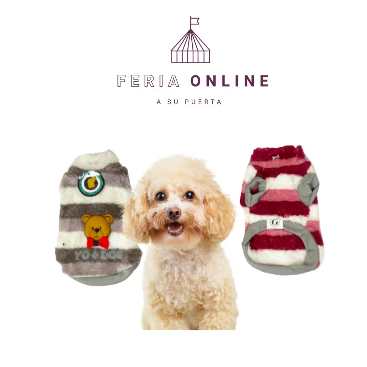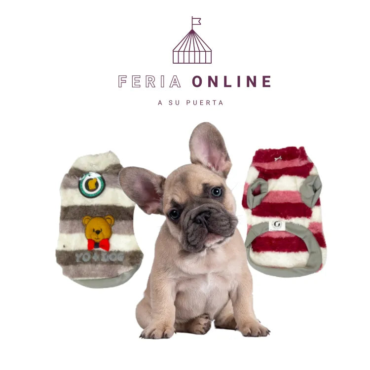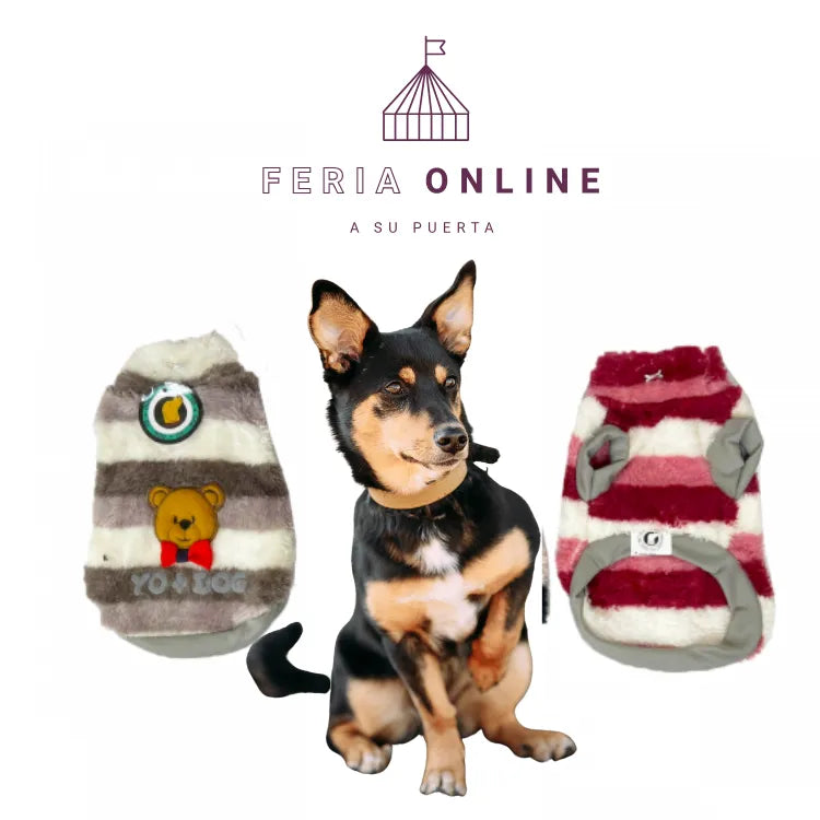 Tu perrita no solo estará abrigada: va a enamorar a todos con este buzo rayado. El cuello alto la protege del viento y la tela peluche es como una manta que abraza. ¡Cálida y con mucho estilo!