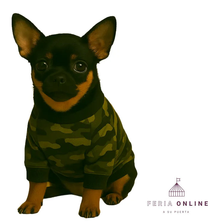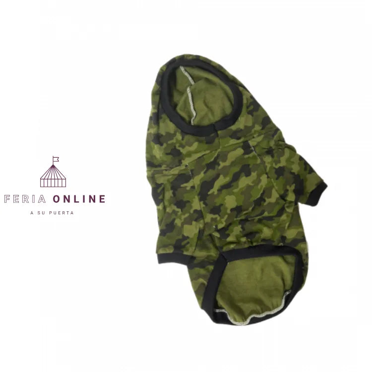 Este buzo con estampado camuflado no es solo una prenda: es una declaración de actitud. Tu mascota lucirá poderosa, valiente y a la moda. ¡Ideal para salir a pasear y robarse todas las miradas! Perfecto para fotos, eventos o simplemente derrochar estilo en casa.