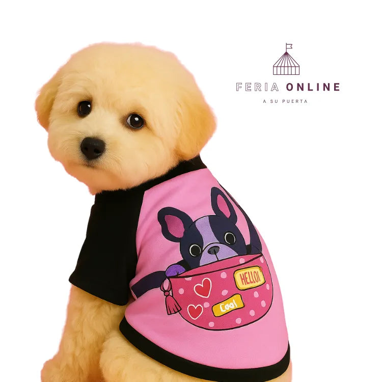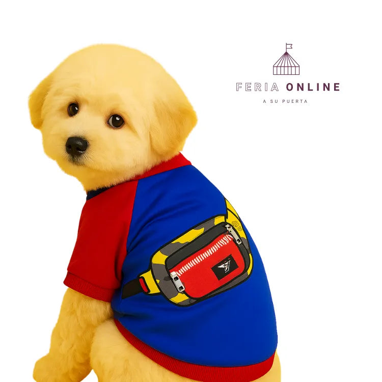 Con su estampado único de bolsito con cachorro, colores vivos y contrastes en negro, este buzo es el outfit perfecto para darle personalidad y encanto a tu mascota. ¡No pasará desapercibida!