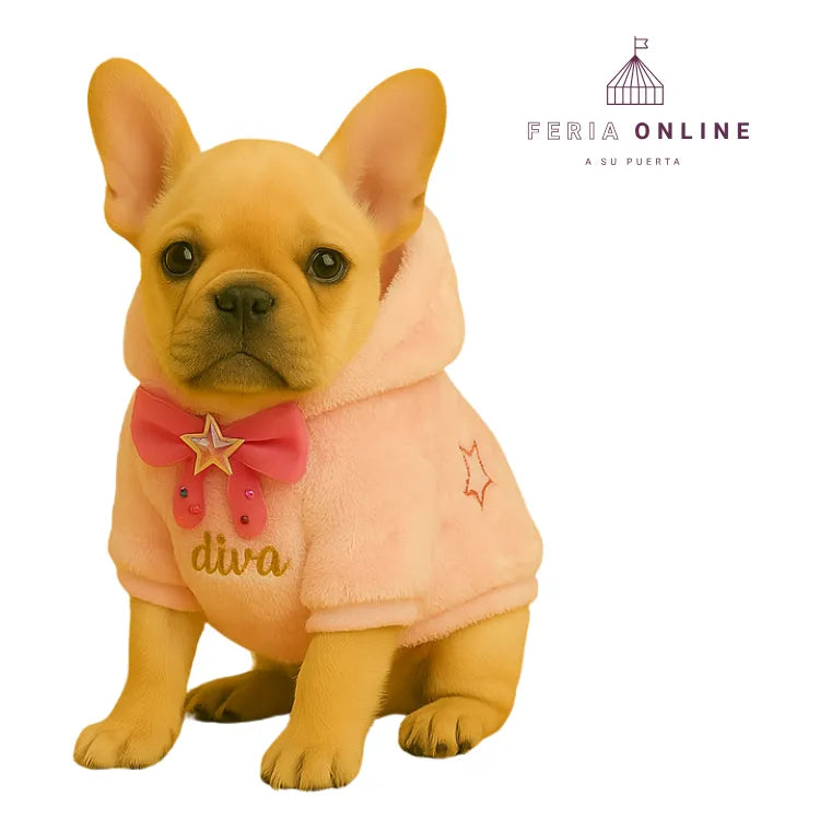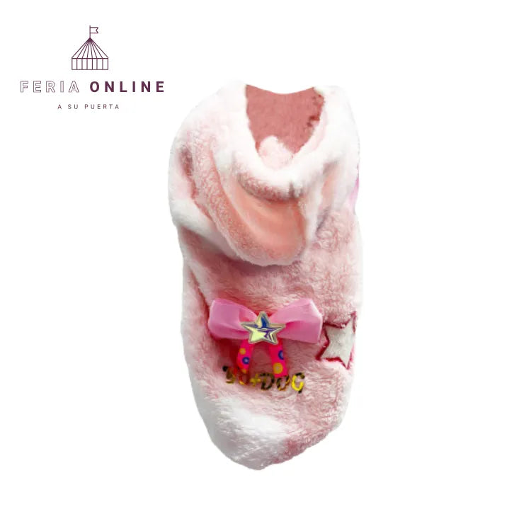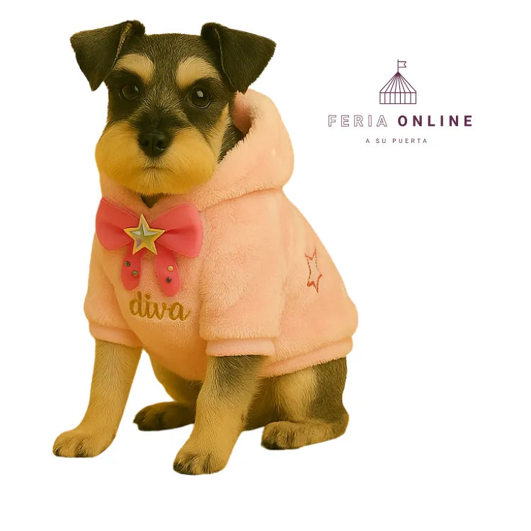 Hecha con tela tipo peluche de alta calidad, esta camiseta térmica envuelve a tu mascota en un abrazo de calor. Su moñito con estrella brillante y bordado delicado la convierte en la reina del invierno.