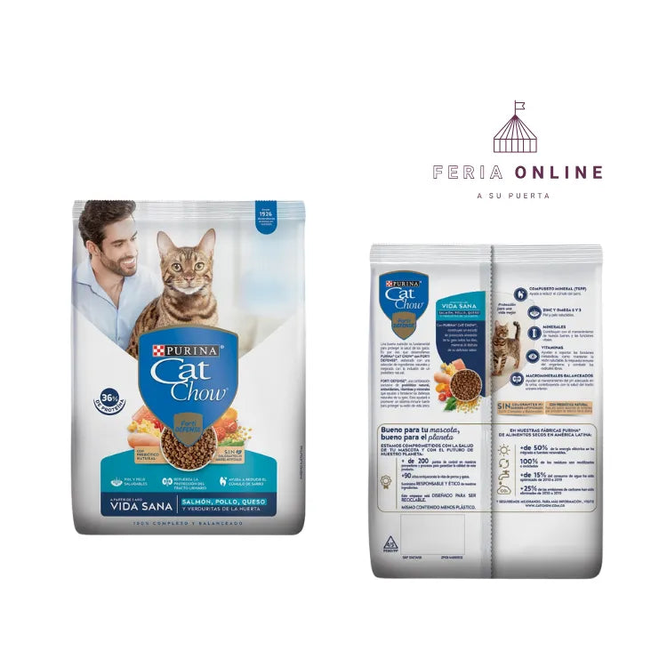 Purina Cat Chow Vida Sana está enriquecido con vitaminas, antioxidantes y minerales, contribuyendo al fortalecimiento de su sistema inmunológico. Esto asegura que tu gato se mantenga saludable y protegido, listo para disfrutar de su vida diaria con más energía.