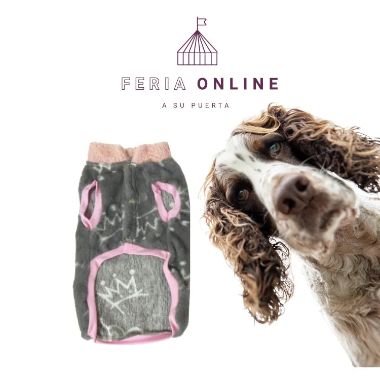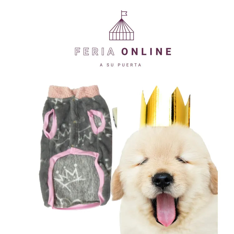 Tu perrita no es cualquier mascota: es parte de tu familia. Este vestido de tela peluche en tonos grises y rosa con detalles de coronita y texturas suaves está hecho para consentirla con estilo. ¡Una pieza única que abraza con amor y elegancia!