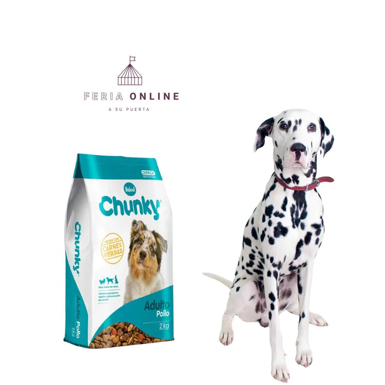 Sabemos lo importante que es brindarle a tu perro una alimentación que no solo lo mantenga feliz, sino también saludable. Chunky con sabor a pollo y arroz es el concentrado ideal para perros adultos, diseñado específicamente para mantener su bienestar, energía y vitalidad. Si deseas asegurar una nutrición completa y balanceada para tu perro, ¡Este es el alimento que necesita!