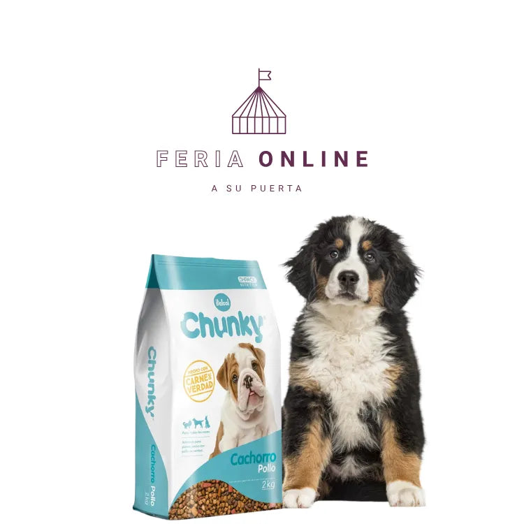 Chunky Cachorro Pollo está diseñado para acompañar los primeros pasos de tu perrito con una fórmula deliciosa, nutritiva y equilibrada. Hecho con carne de pollo real y pensado para todas las razas, este alimento fortalece su desarrollo físico, cognitivo e inmunológico desde el primer día.