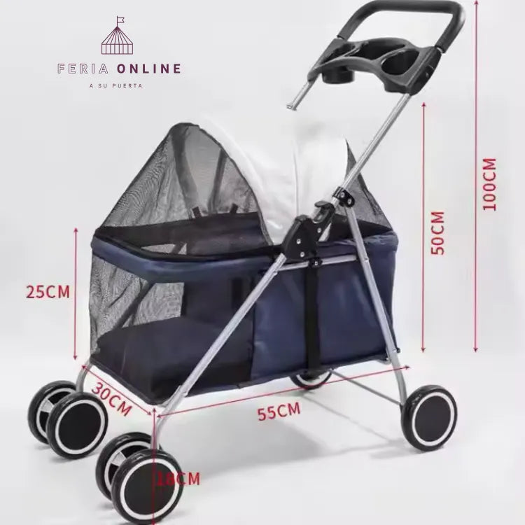 Su diseño ligero y resistente, con tubos de acero y tela fácil de limpiar, garantiza durabilidad y comodidad para ambos. Con un peso máximo soportado de 10 kg, es ideal para perros y gatos pequeños.Con medidas ideales para facilitar la movilidad y el almacenamiento, esta carriola es la solución definitiva para paseos sin preocupaciones, donde tú y tu mascota disfrutarán cada momento al aire libre.