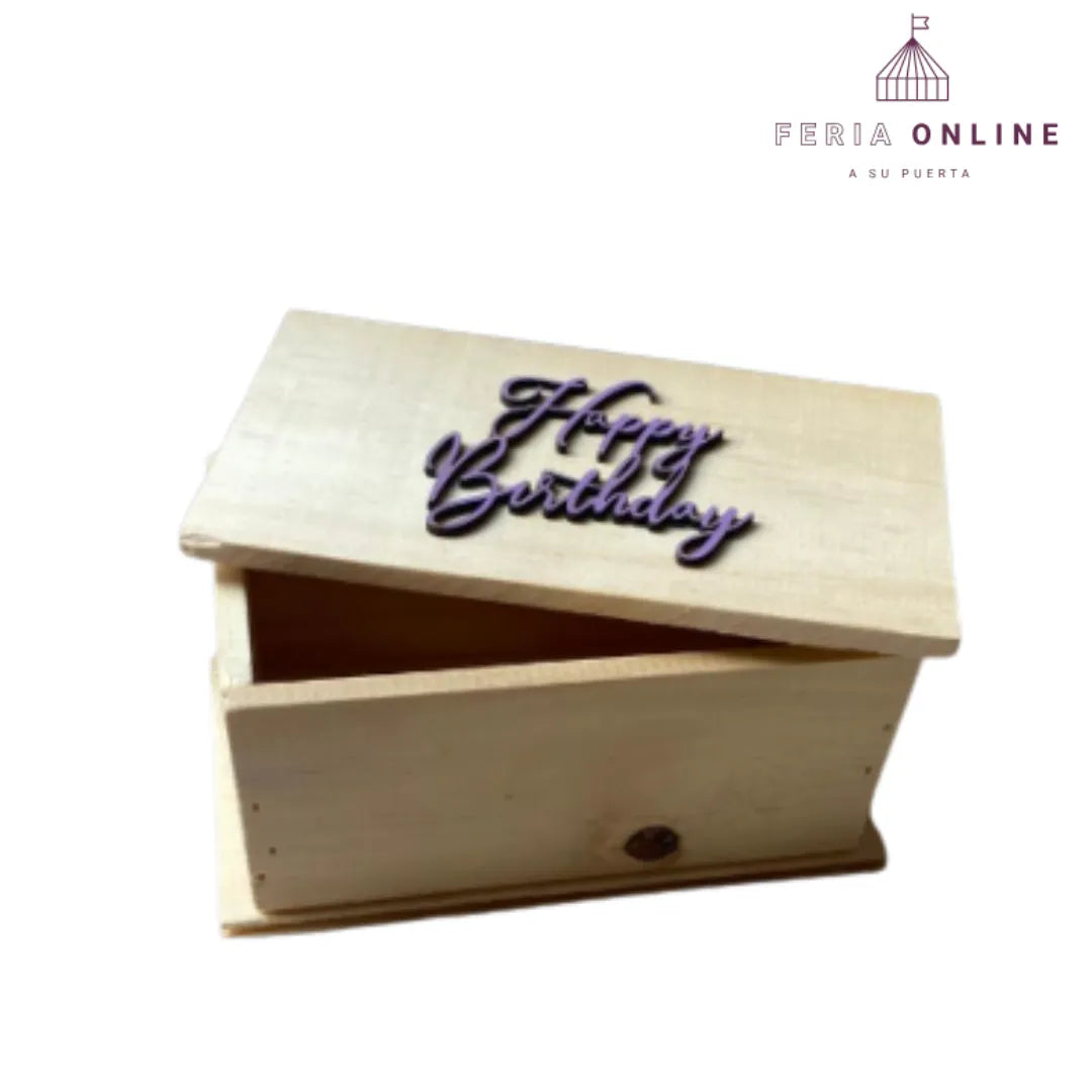 ¿Te imaginas entregar un detalle que no solo sea un obsequio, sino también un recuerdo eterno? Este cofre de madera con tapa y mensaje de Happy Birthday no es un simple envoltorio, es una experiencia única que guarda emociones, cariño y momentos especiales.