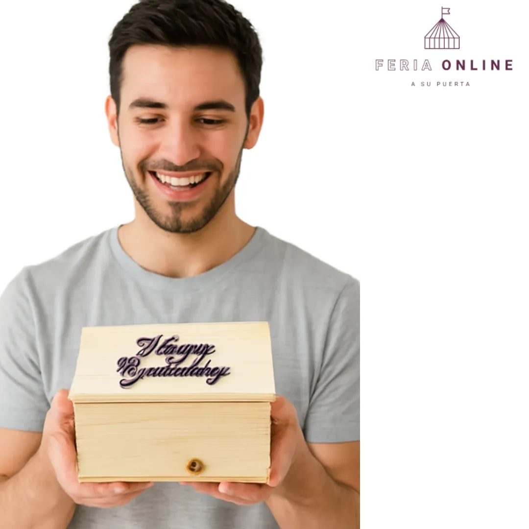 Fabricado en madera resistente, con un grabado de alta calidad, este cofre no solo protege lo que contiene, sino que decora y transmite un mensaje lleno de alegría. ¡Cada cumpleaños merece un detalle que brille tanto como la persona que lo recibe!