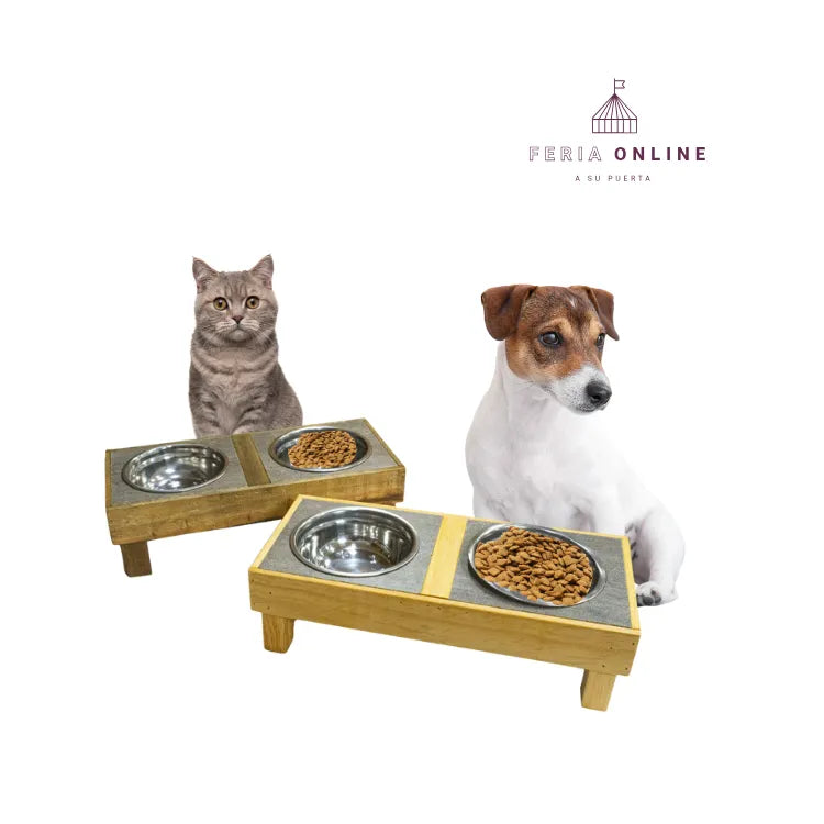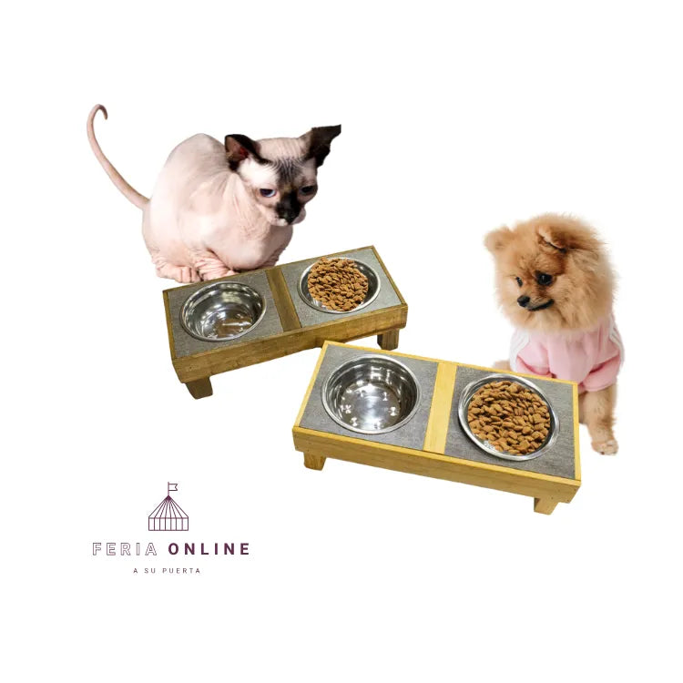 Comedero Alto en Madera de 2 Puestos