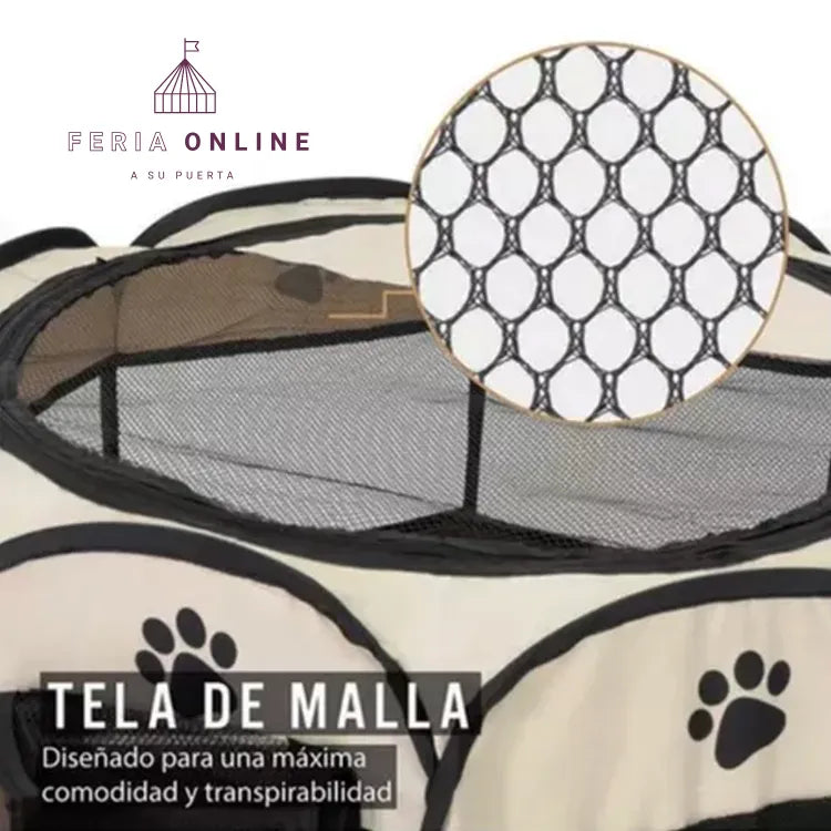 Fabricado con malla transpirable, nuestro corral permite una circulación de aire óptima, manteniendo a tus mascotas frescas incluso en días calurosos. La tela Oxford, conocida por su resistencia al desgaste, añade durabilidad y facilidad de limpieza, ayudándote a mantener un ambiente higiénico sin esfuerzo.