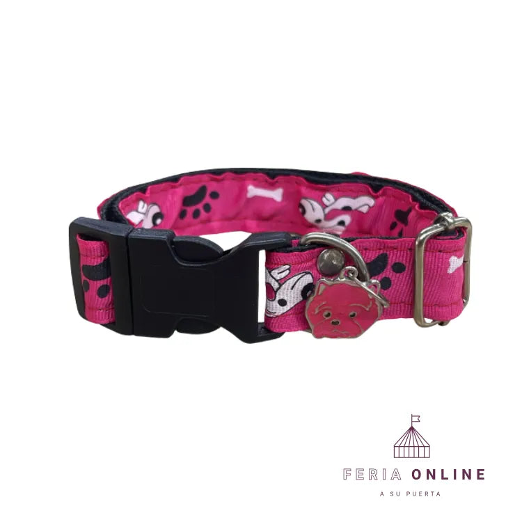 Este collar no solo es resistente y ajustable, sino que tiene un diseño adorable con huellitas, huesitos y un dije metálico que hará que tu peludo robe corazones.