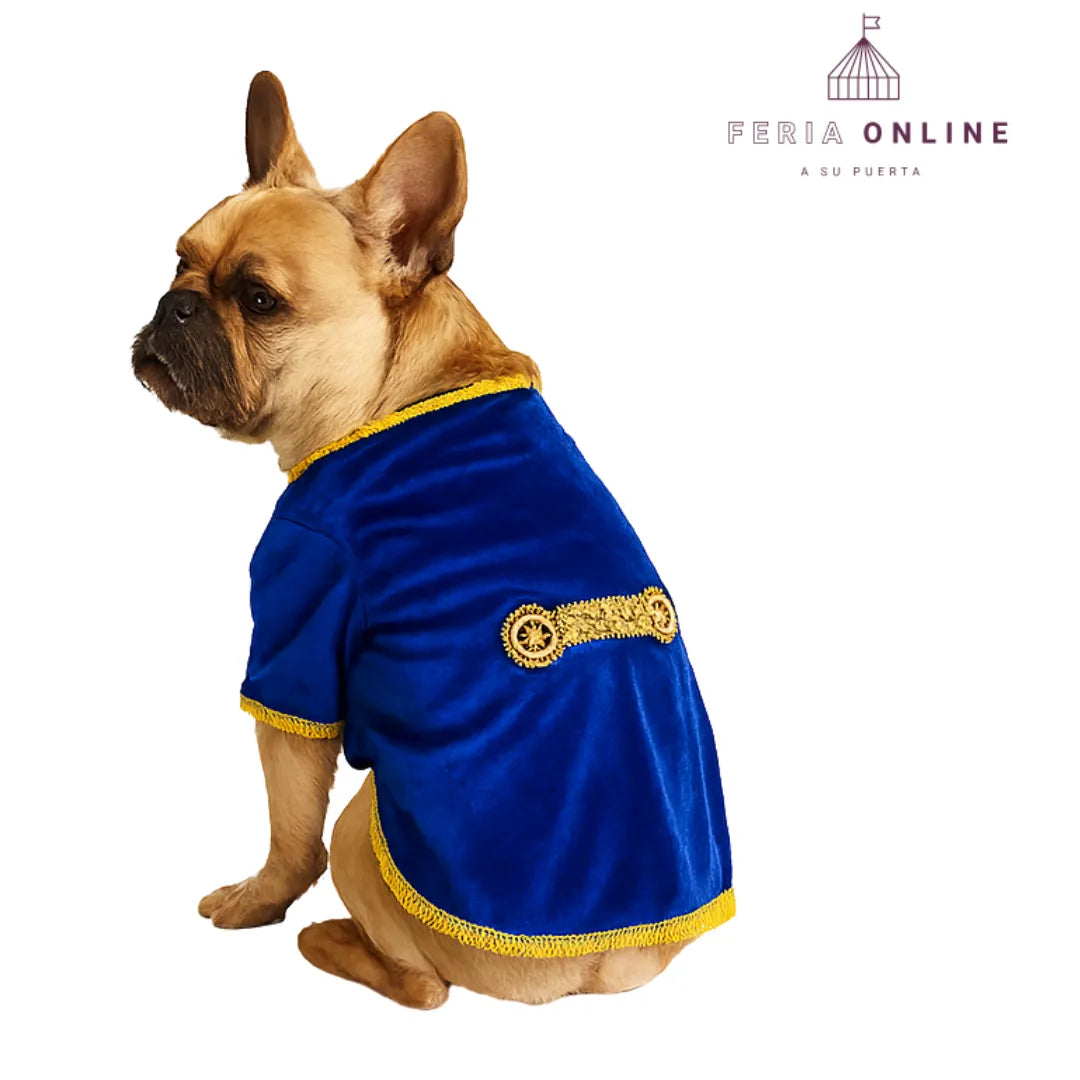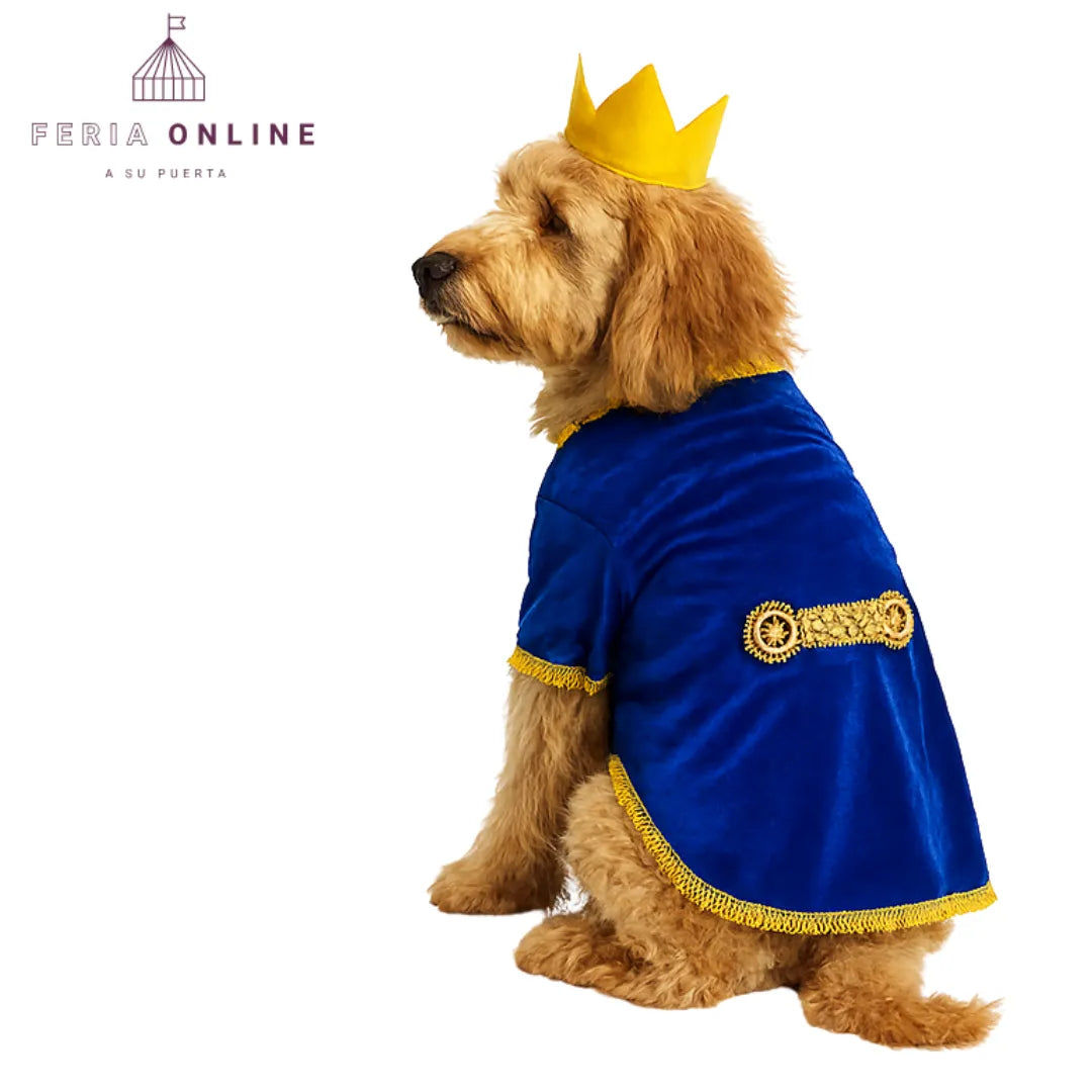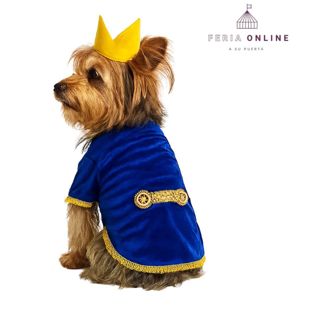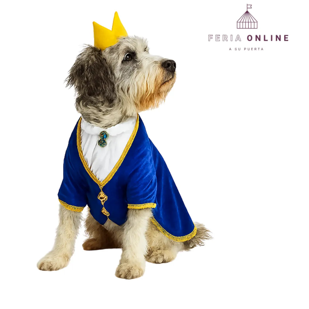 No es solo un traje, es una pieza llena de detalles: su tela aterciopelada, bordes dorados y la corona harán que tu perro luzca elegante y majestuoso. Ideal para fiestas temáticas, disfraces de pareja (con la Bella), o para esos momentos especiales donde quieres destacar con algo único y lleno de estilo.