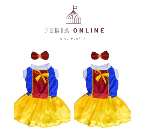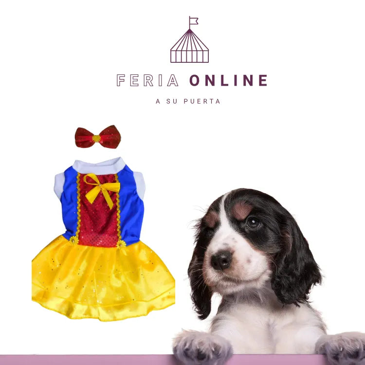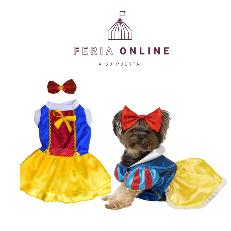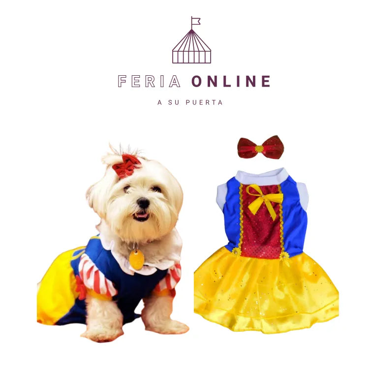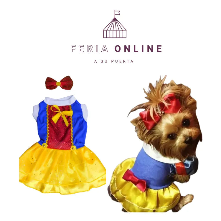 Haz que tu peludo se robe todas las miradas con este vestido inspirado en Blanca Nieves. ¡Colores vivos y diseño encantador!