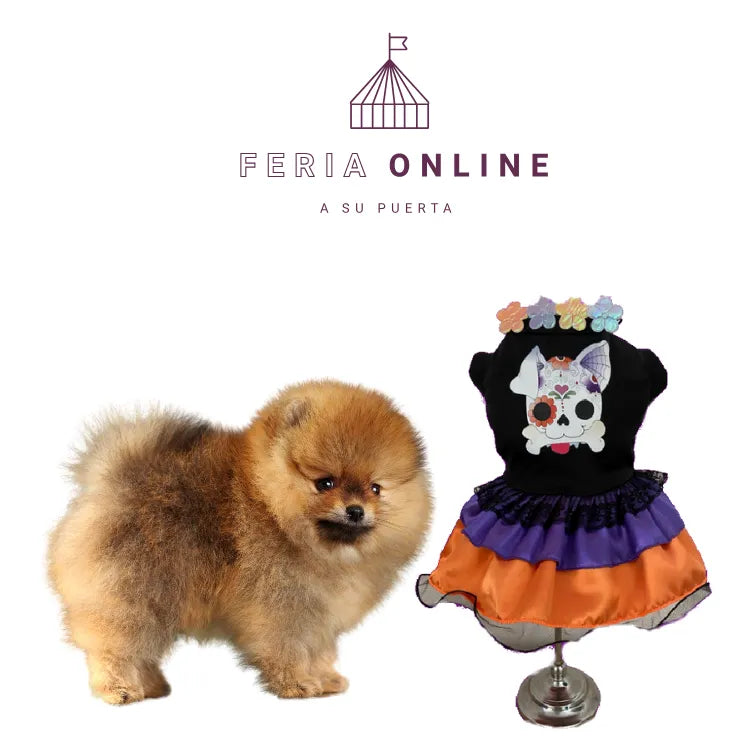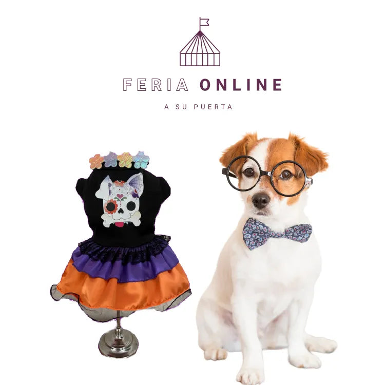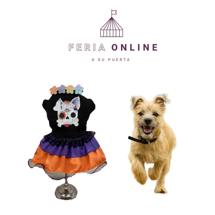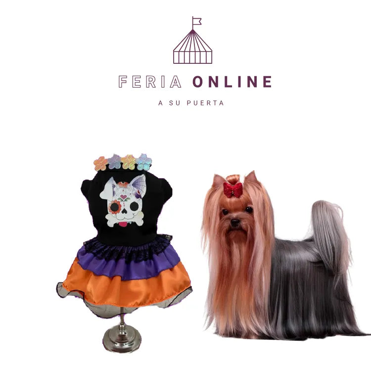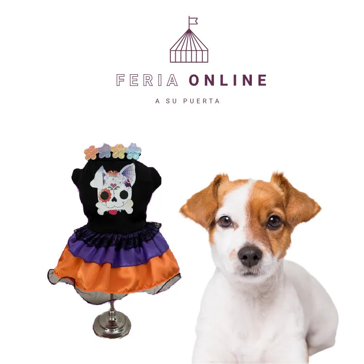 Tu perrita lucirá espectacular con este disfraz de Catrina, lleno de color, tradición y elegancia mexicana.