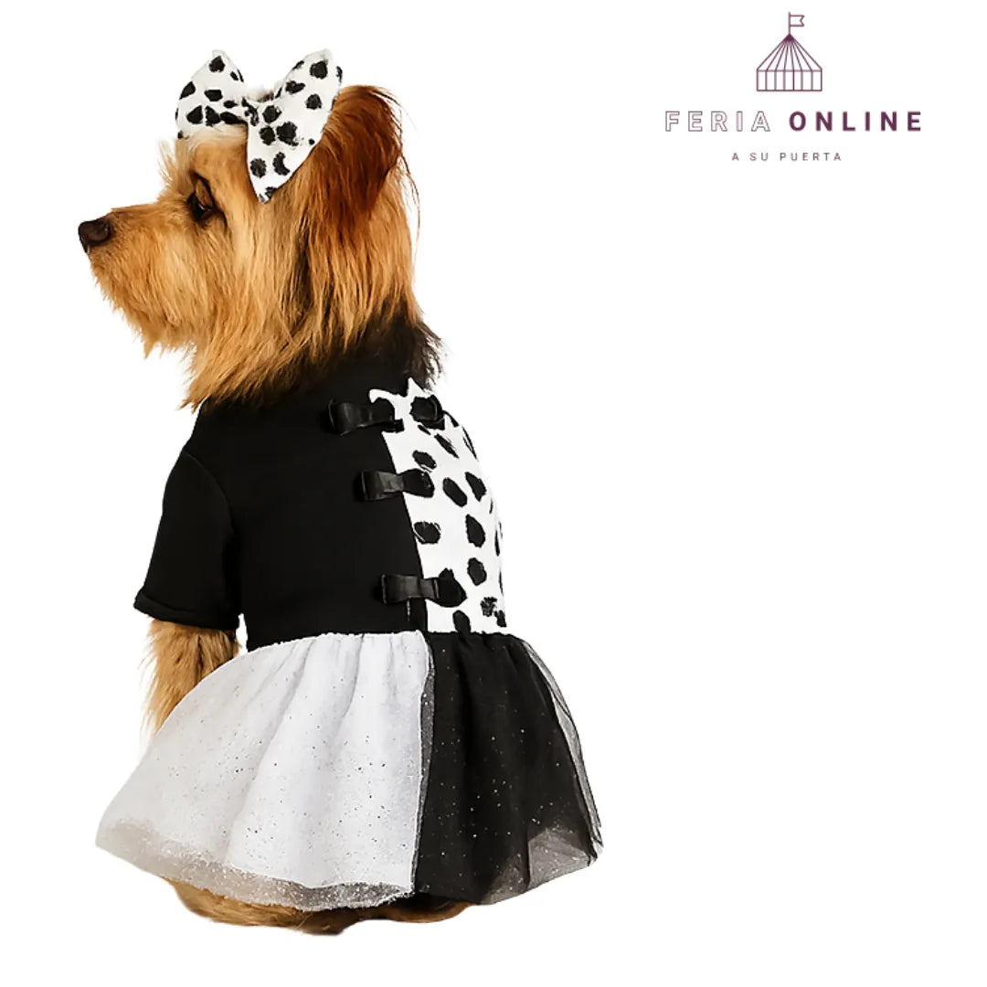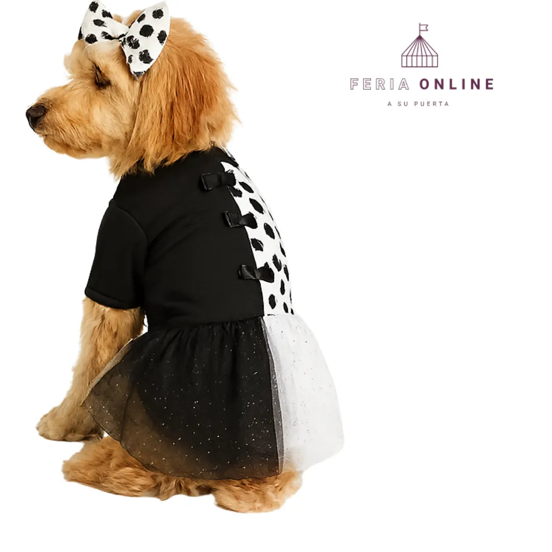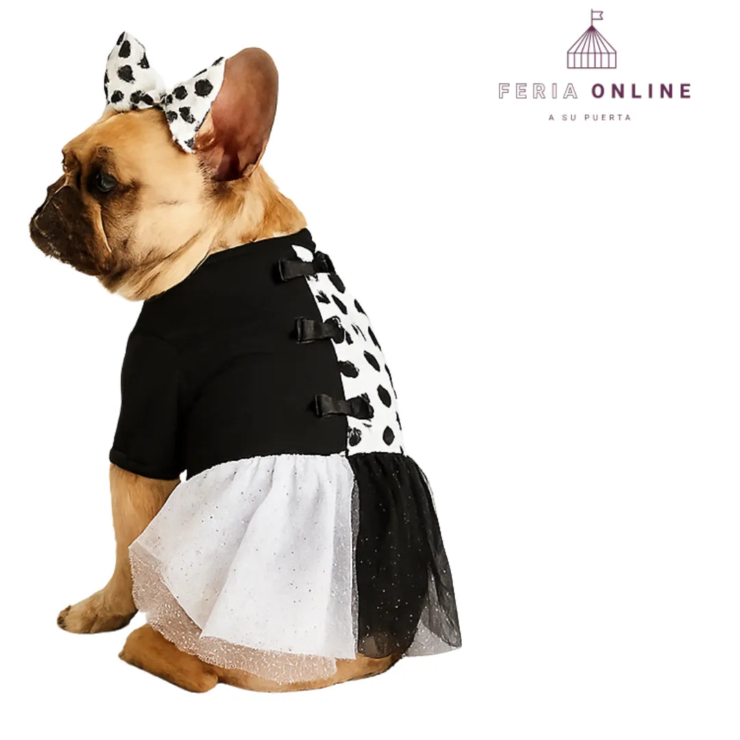 ¿Te imaginas a tu perro robándose todas las miradas con un disfraz de Cruella? Este atuendo no es solo un disfraz, es la manera más divertida y glamorosa de darle a tu peludo un look único. Ninguna fiesta, desfile o salida será igual: todos quedarán impresionados con su porte y estilo.