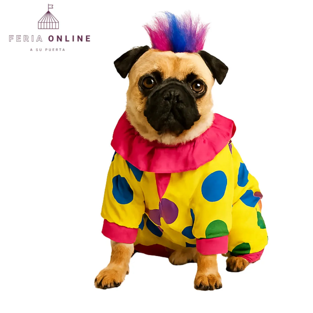 ¿Te imaginas a tu perro convertido en el payaso más terroríficamente adorable de la fiesta? Con este disfraz no solo llamará la atención, sino que será el centro de todas las miradas y risas. Es imposible que alguien pase de largo sin detenerse a mirar a tu peludo con este look único y divertido.
