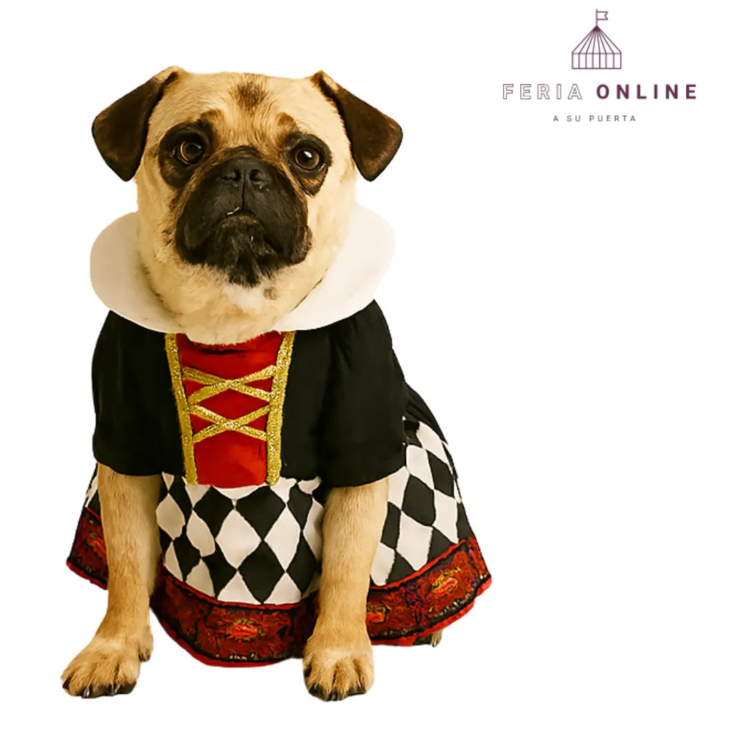 ¿Te imaginas a tu mascota robándose todas las miradas en cada fiesta o paseo? Con el disfraz de Reina de Corazones tu perro será el centro de atención, lleno de ternura y estilo. Nada más encantador que verlo lucir como el verdadero protagonista del día.