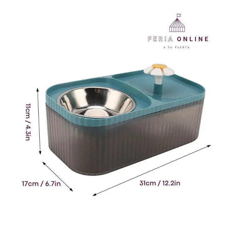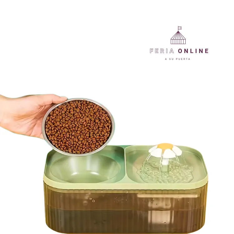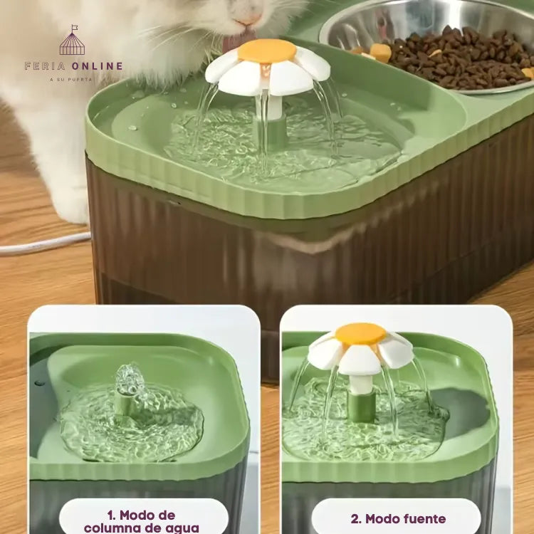 🌸Fuente de agua de flores con comedero incluido: Atrae la atención de tu mascota, haciendo que beber y comer sea más divertido.