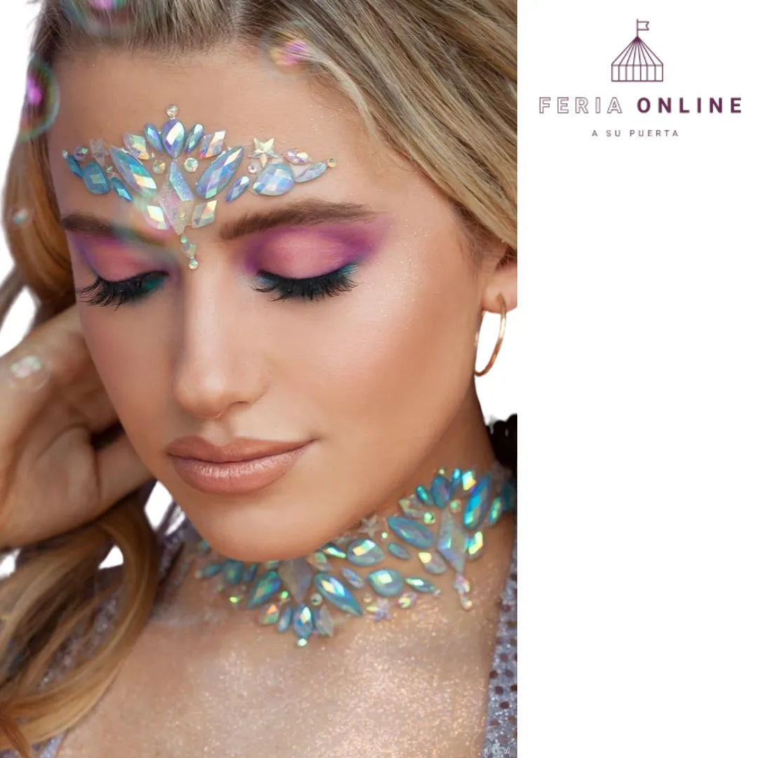 No es solo maquillaje, es tu manera de expresarte. Las gemas faciales te permiten jugar con diseños, brillos y formas que reflejan tu esencia. Úsalas en fiestas, conciertos, festivales o incluso en looks creativos para redes sociales. Cada gema es un toque de glamour que resalta lo que te hace única y le da a tu rostro un efecto digno de pasarela.