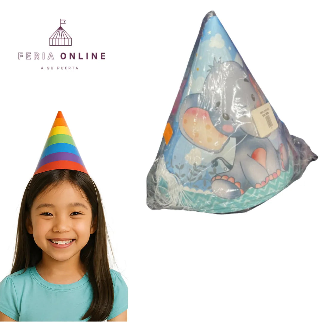Vienen armados o fáciles de armar, con elástico incluido para todas las edades. Fabricados en cartón resistente, livianos y con diseños festivos que combinan con cualquier decoración. Ahorra tiempo y esfuerzo mientras elevas el ambiente en segundos. ¡Perfectos para cumpleaños infantiles, familiares o escolares!