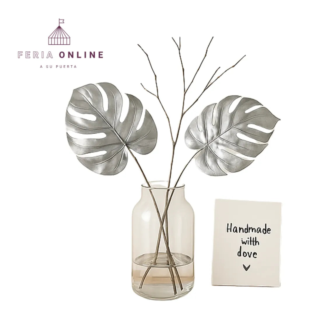 Imagina entrar a casa y sentir que estás en una galería de diseño. Eso es lo que logran estas hojas artificiales: dar un aire moderno, limpio y sofisticado. Evita el caos de cambiar flores constantemente o preocuparte por regar. Esta hoja plateada es durable, brillante y siempre lista para impresionar.