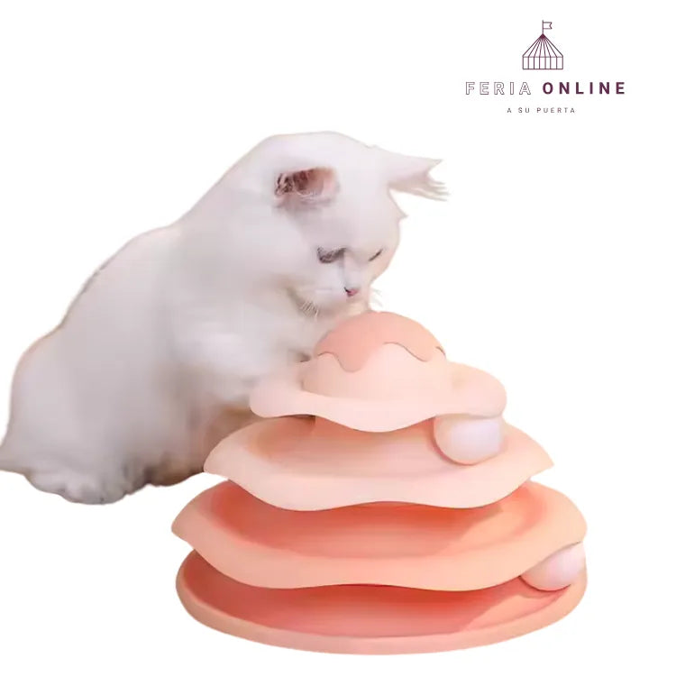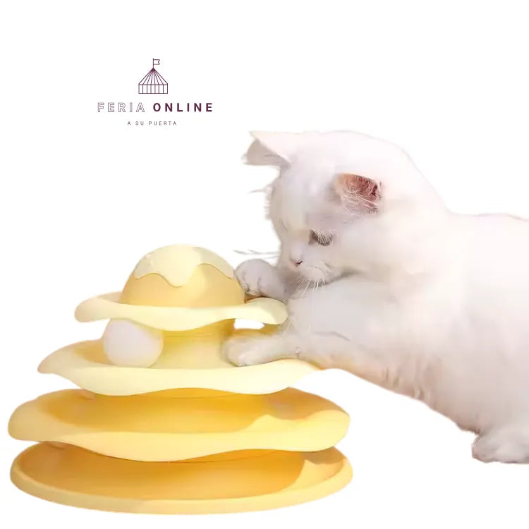 Este juguete cuenta con un diseño innovador de pista que combina el tema de un helado con una estructura de 3 niveles. Los obstáculos y giros en la pista añaden un nivel extra de desafío, lo que fomenta que tu gato se mueva, salte y explore mientras intenta atrapar el objetivo. Esta dinámica no solo proporciona diversión, sino que también estimula la energía y agilidad de tu felino, promoviendo el ejercicio físico.
