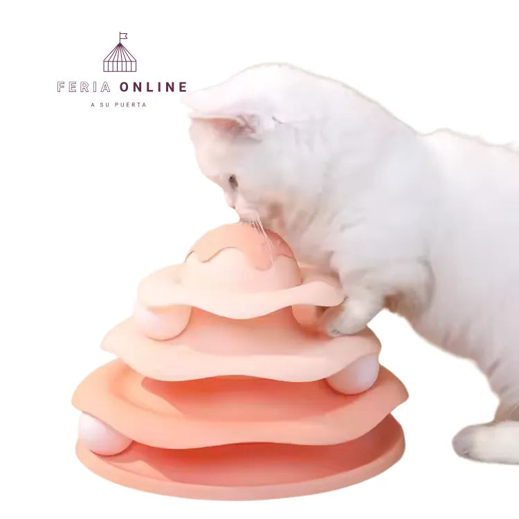 🔄Pista de 3 niveles con giros y obstáculos, añadiendo un desafío para tu gato