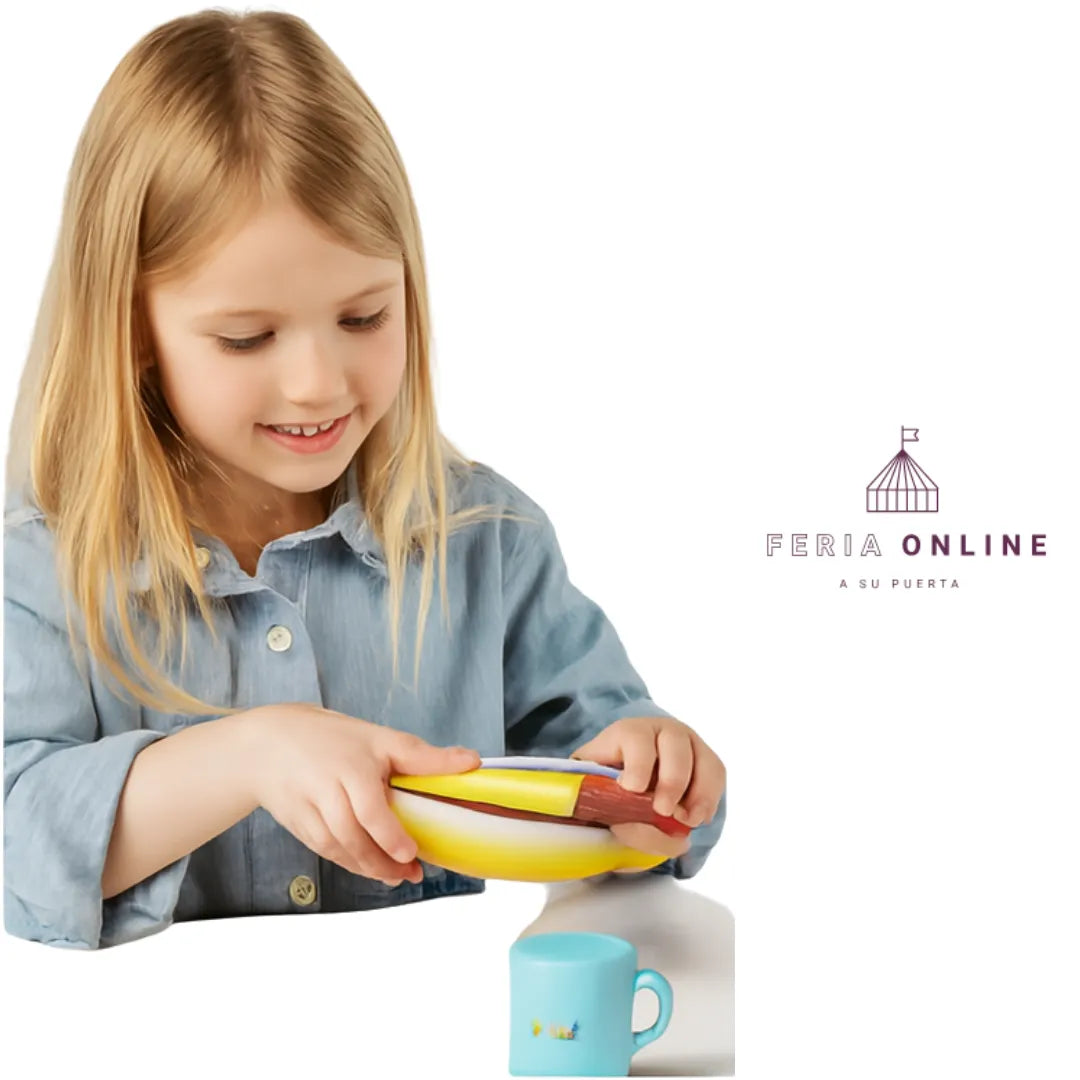Cada pieza está diseñada para simular comidas reales, permitiendo a los niños desarrollar su motricidad, coordinación y juego simbólico. Con vasos, panecillos, ingredientes y utensilios, este kit transforma cualquier rincón en una mini cocina llena de imaginación. ¡Ideal para horas de diversión sin pantallas!