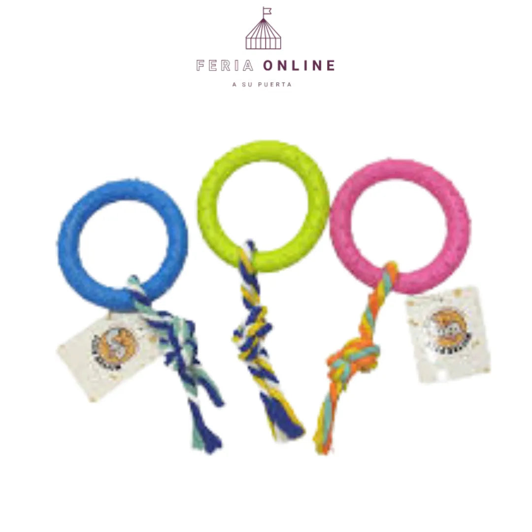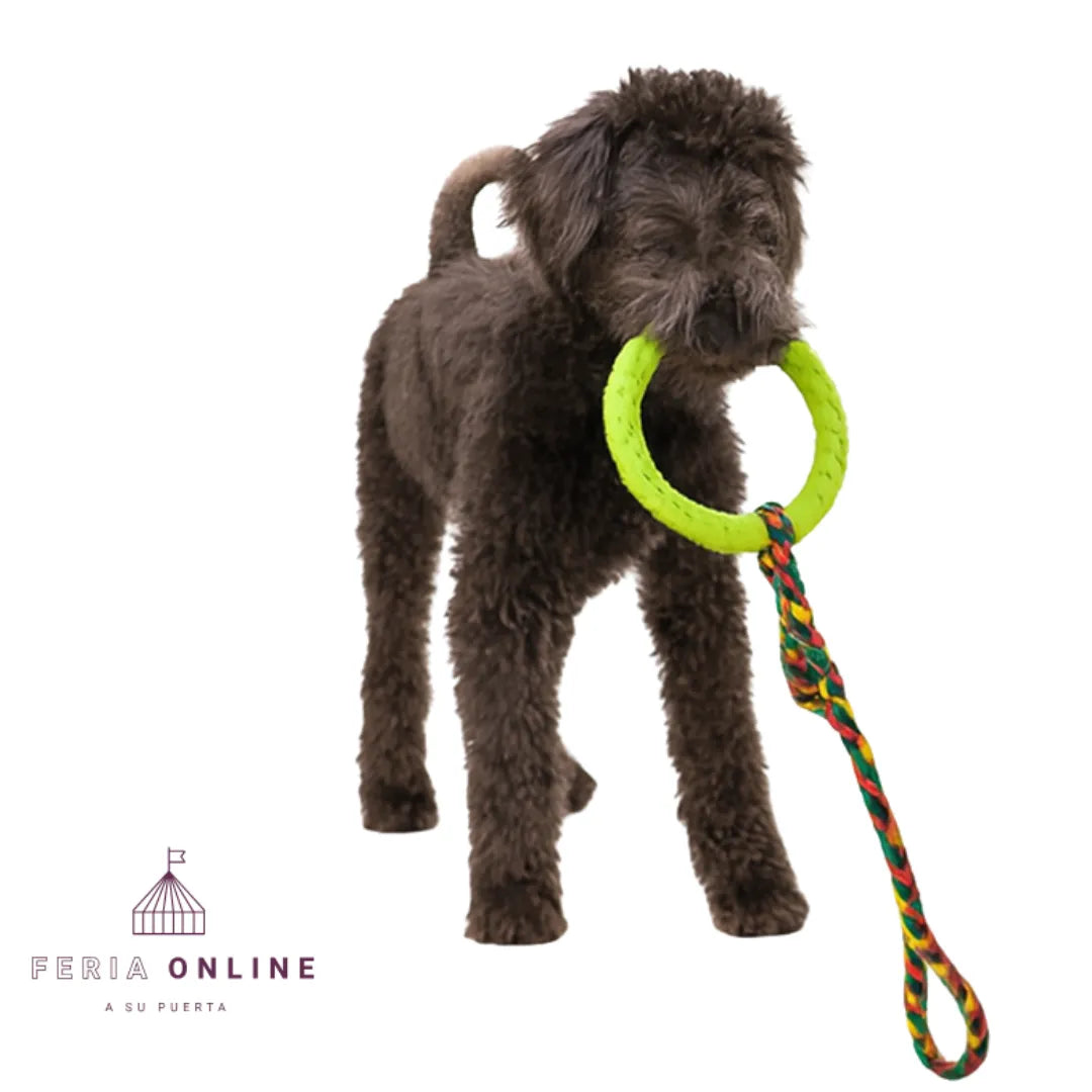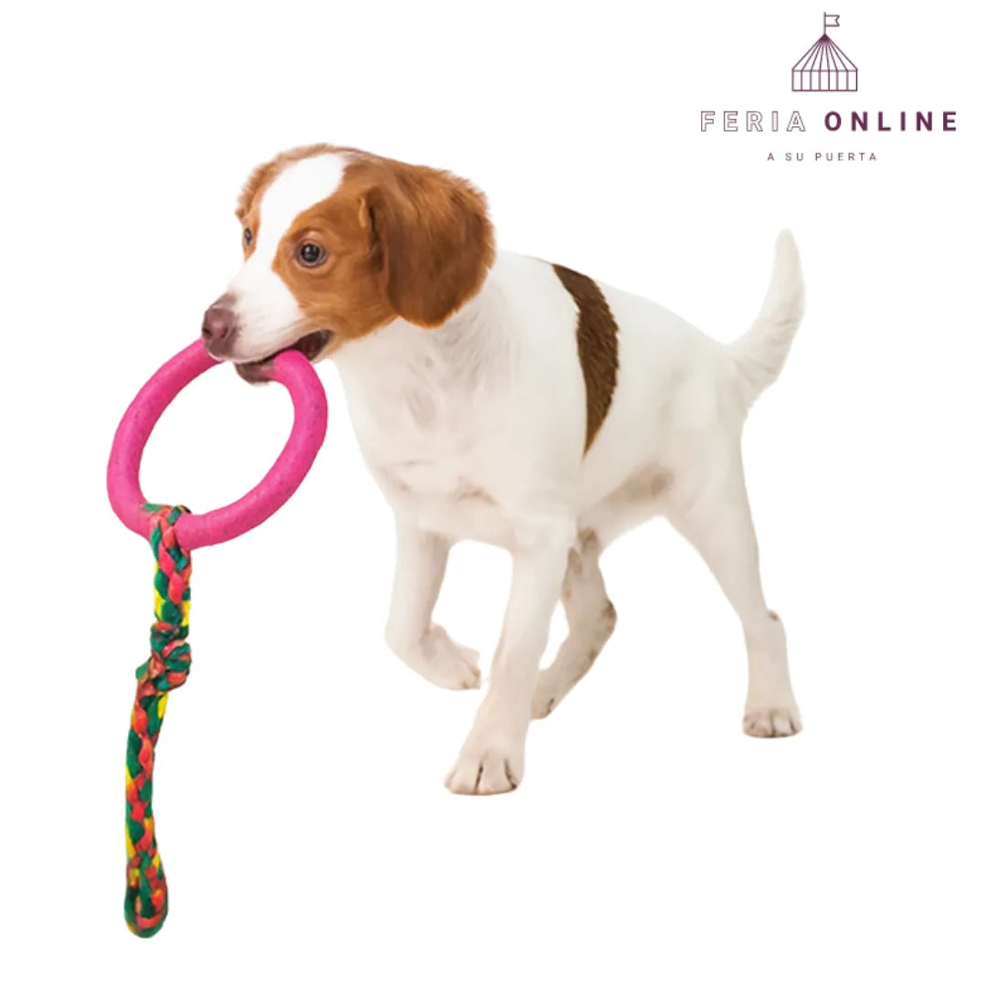 ¿Tu perro no para quieto o muerde todo lo que encuentra? 😩 Dale una salida divertida y saludable con el Juguete Lazo con Aro para Perros. Su diseño resistente y ergonómico lo convierte en el accesorio ideal para tirar, morder o jalar sin romperse ni lastimar. ¡Tu peludo se divertirá mientras tú disfrutas de su felicidad!