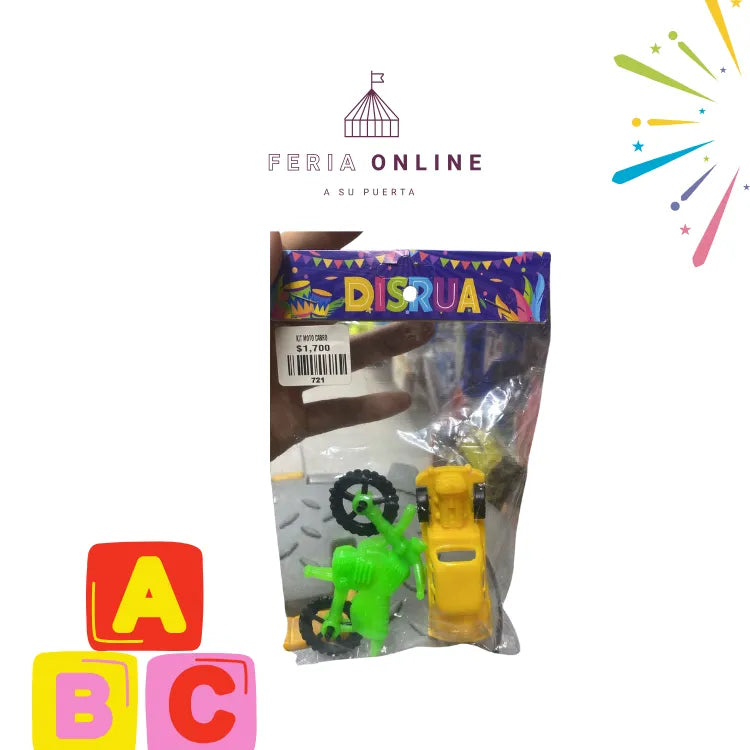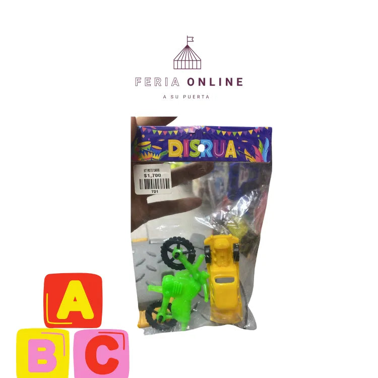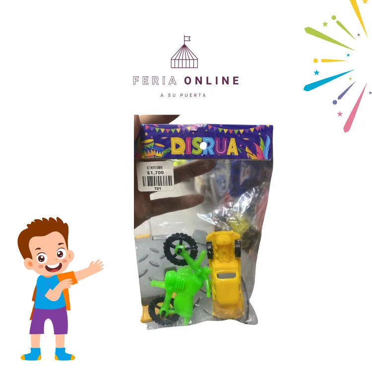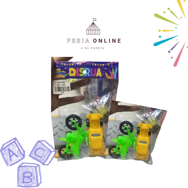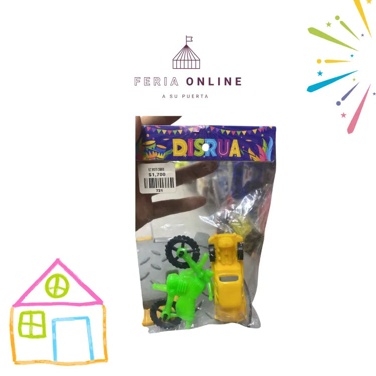 🏍️ Incluye 1 moto y 1 carro en colores vibrantes
