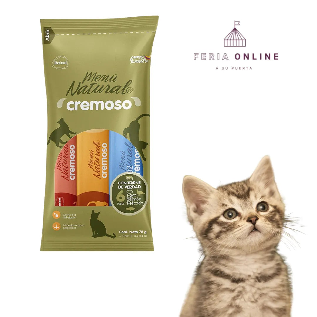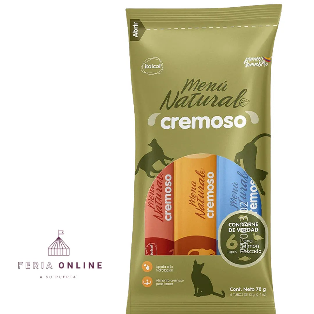 ¿Tu gato ya no muestra interés por su comida? ¡Es momento de ofrecerle una experiencia gourmet! El Menú Natural Cremoso Sachet X6 transforma cada bocado en un momento de felicidad pura. Con texturas irresistibles y sabores naturales, tu felino volverá a correr hacia su plato como si fuera la primera vez.