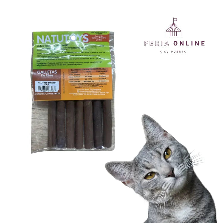 El Palito de Carne x 50 GR es un snack blando, jugoso y lleno de sabor natural que hace que cualquier gato se vuelva loco de felicidad. Ideal para premiar buenas acciones, entrenamientos o simplemente para demostrarle cuánto lo amas.