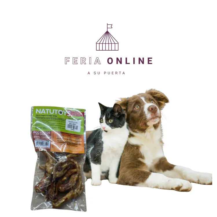 Dale un snack honesto, saludable y delicioso. Las patas de pollo Natutoys son 100 % naturales, crujientes y ricas en glucosamina: protegen las articulaciones, limpian los dientes y mantienen a tu perro feliz por horas. ¡Haz que su snack también sea su medicina!
