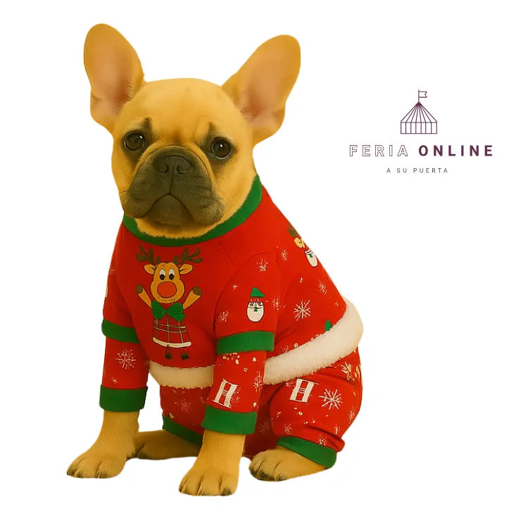 No dejes que tu mascota pase desapercibida en las fiestas. Esta adorable pijama navideña lo hará destacar y robarse todas las miradas.