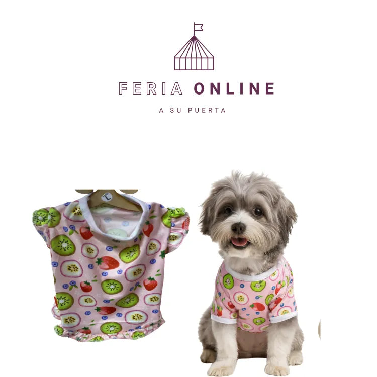 Descubre la pijama más adorable con estampado de frutas, pensada para darle a tu mascota comodidad, calor y un look irresistible.