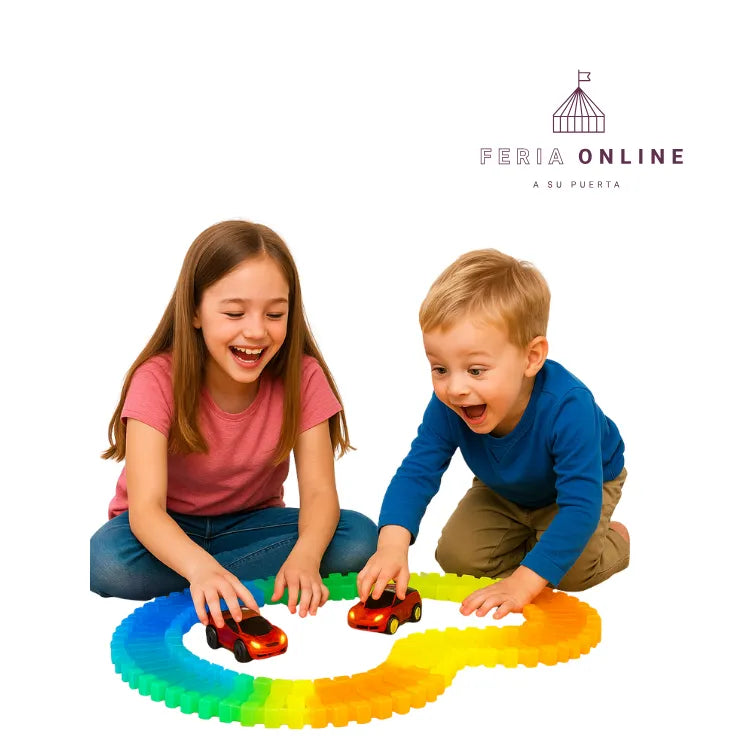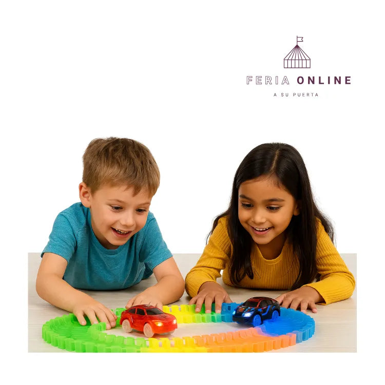 Una pista que brilla, se arma sola y nunca se repite. Armarla es tan divertido como correr el auto LED. Ideal para desarrollar creatividad y compartir en familia.