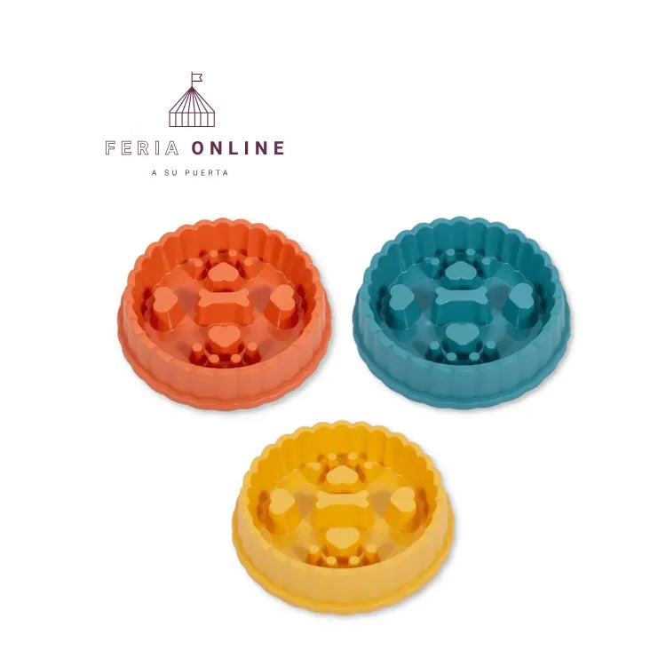 Taza Para Mascotas, Comedero Comida Lenta Redondo Amarillo