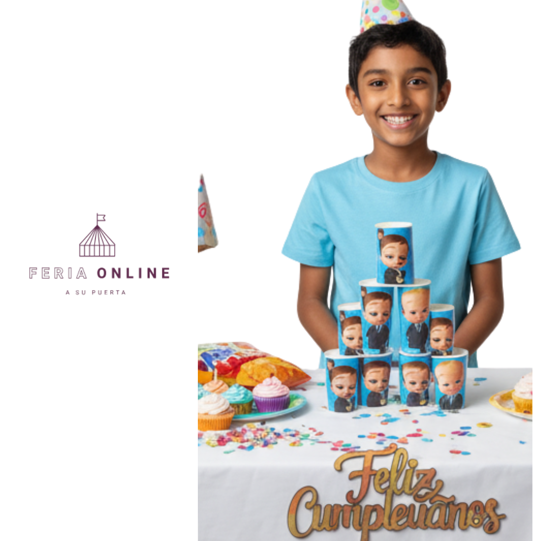 ¿Te imaginas ver la cara de felicidad de tu hijo cuando vea su mesa decorada con sus personajes favoritos? 😍 Estos vasos desechables Jefe en Pañales llenarán su fiesta de color, estilo y diversión. 🎉 Cada detalle cuenta, y este toque hará que todos los invitados se sientan parte de una celebración única, original y divertida. ✨