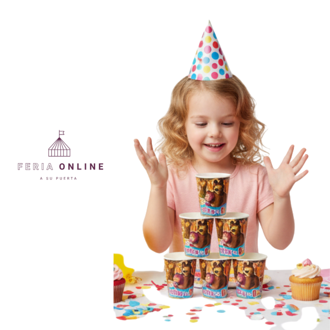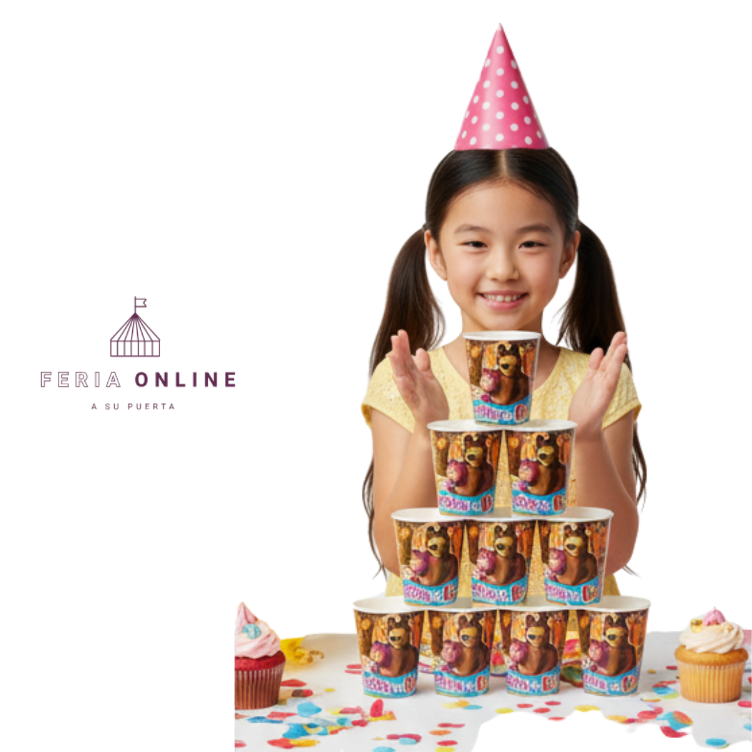¿Te imaginas la emoción en los ojos de tu hija al ver su mesa llena de colores, risas y a sus personajes favoritos? 😍 Los vasos desechables Masha y el Oso son la forma más tierna y mágica de celebrar su día. 🌈 Cada vaso está lleno de encanto, alegría y un diseño adorable que hará que cada invitado se sienta dentro del bosque de Masha. 🌻