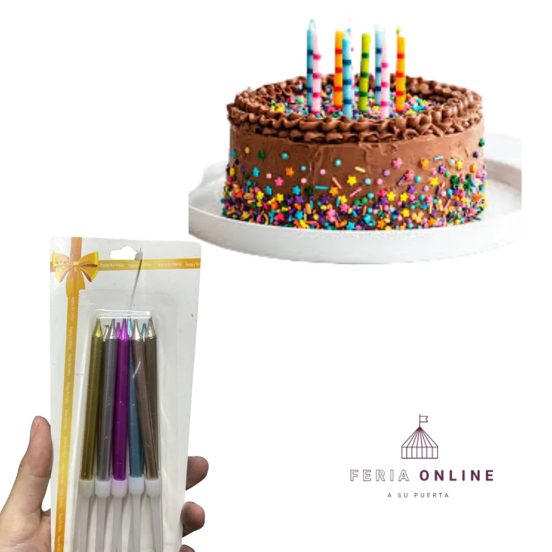 Las velas no solo iluminan, ¡también decoran! Sus tonos metalizados se convierten en el detalle elegante que marca la diferencia en cumpleaños, aniversarios y celebraciones especiales. Ya no tendrás que preocuparte porque tu pastel se vea simple: estas velas lo llenan de estilo y sofisticación.