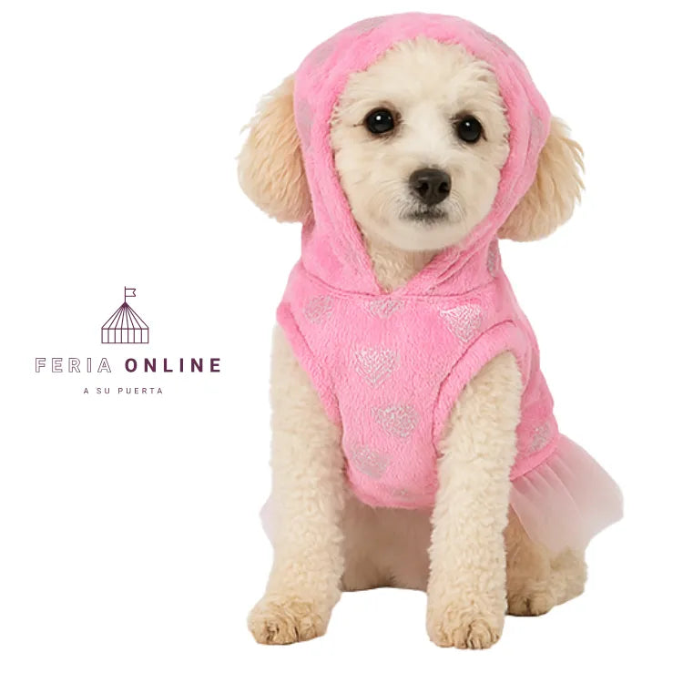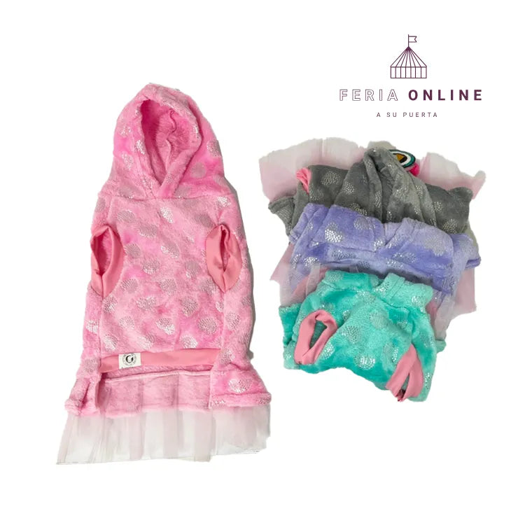 Este vestido está diseñado pensando en su bienestar: una tela peluche suave y delicada para su piel, un tutú esponjoso que la hace ver como un sueño y una capota elegante que añade un toque extra de ternura y protección.